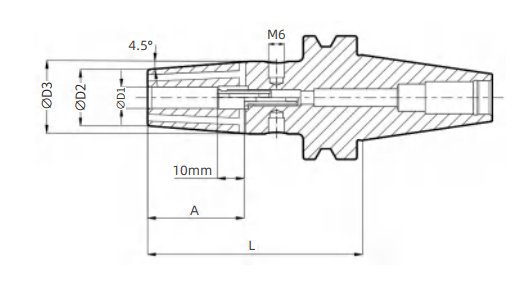 Runout < 0.003mm Balancing Grade: G2.5at 25,000 rpmor Umax <1g·mm With adjustable axial length Specification Value Ordering Code BGCBT30AST18090M Product Type General Purpose & Cool Jet Coupling Type BT30A Chuck Type Shrink-ft Chuck Clamping Hole Diameter 18 Effective Length 90 Format Metric D1 (mm) 18 D2 (mm) 33 D3 (mm) 40.5 L (mm) 90 A (mm) 50 Coolant Set Screw M12 Weight (kg) 0.84 Product Type General Purpose & Cool Jet Coupling Type BT30A Flange Type Automatic change tool with center cooling hole Chuck Type Shrink-ft Chuck Clamping Hole Diameter 18 Effective Length 90 Format Metric D1 18 D2 33 D3 40.5 L 90 A 50.0 Coolant Set Screw M12 Weight m (kg) 0.84