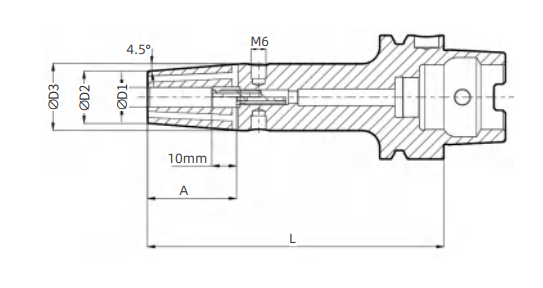 跳动精度 < 0.003mm 转速为 25,000rpm 时,平衡质量等级达到 G2.5 或 Umax < 1g·mm 带轴向长度调节 属性 值 订货号 BGCH5K50AST12090M 产品类型 通用型端面出水 接口规格 HSK50A 刀柄类型 热装刀柄 夹持孔直径 (mm) 12 有效长度 (mm) 90 制式 公制 D1 (mm) 12 D2 (mm) 24 D3 (mm) 32 L (mm) 90 A (mm) 47 过水顶丝 M8 重量 (kg) 0.65 产品类型 通用型端面出水 接口规格 HSK50A 法兰类型 自动换刀中心冷却孔 刀柄类型 热装刀柄 夹持孔直径 12 有效长度 90 制式 公制 D1 12 D2 24 D3 32 L 90 A 47.0 过水顶丝 M8 重量 m (kg) 0.65 水嘴 M16¹